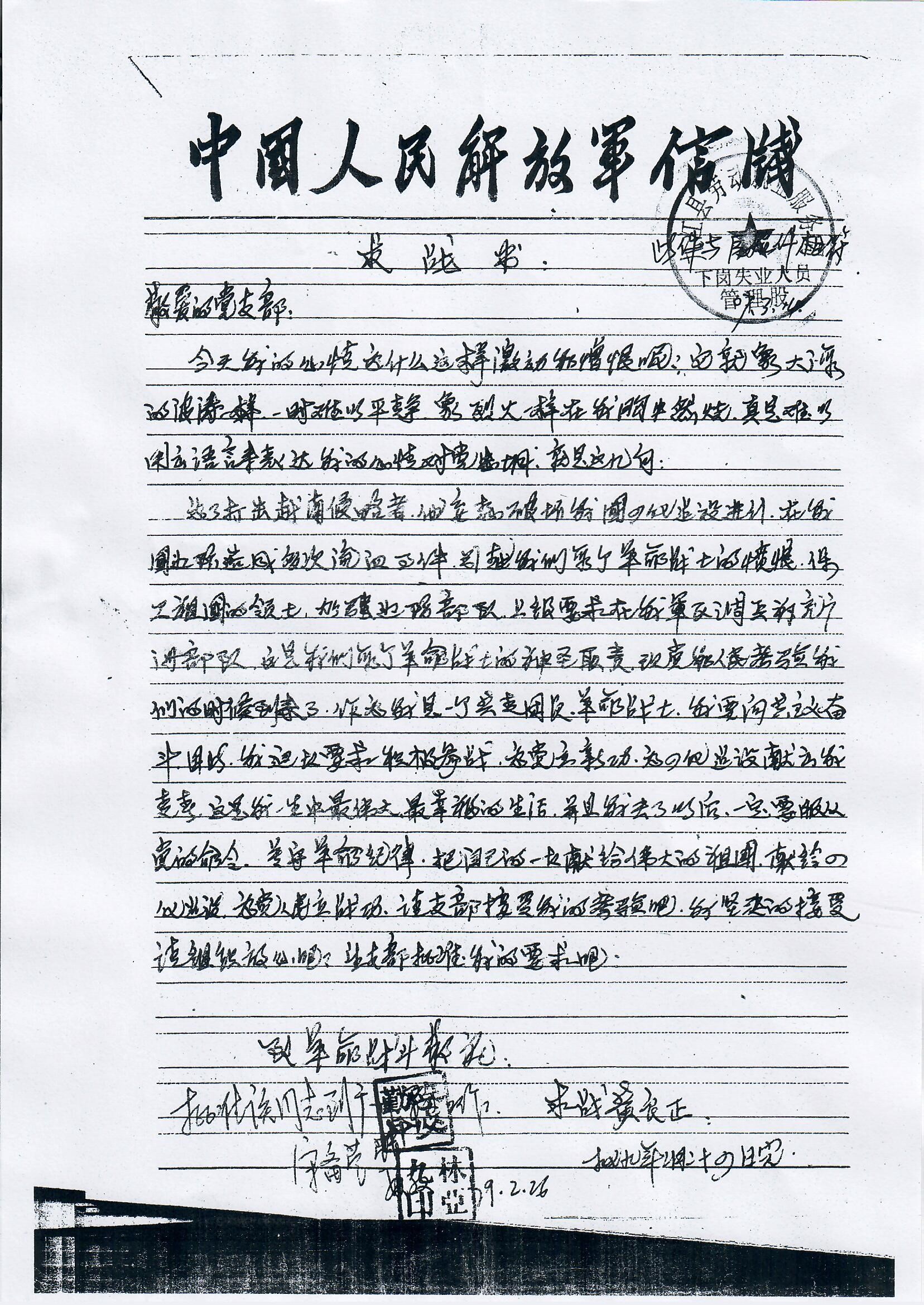 (老黃請求上前線的《求戰(zhàn)書》)