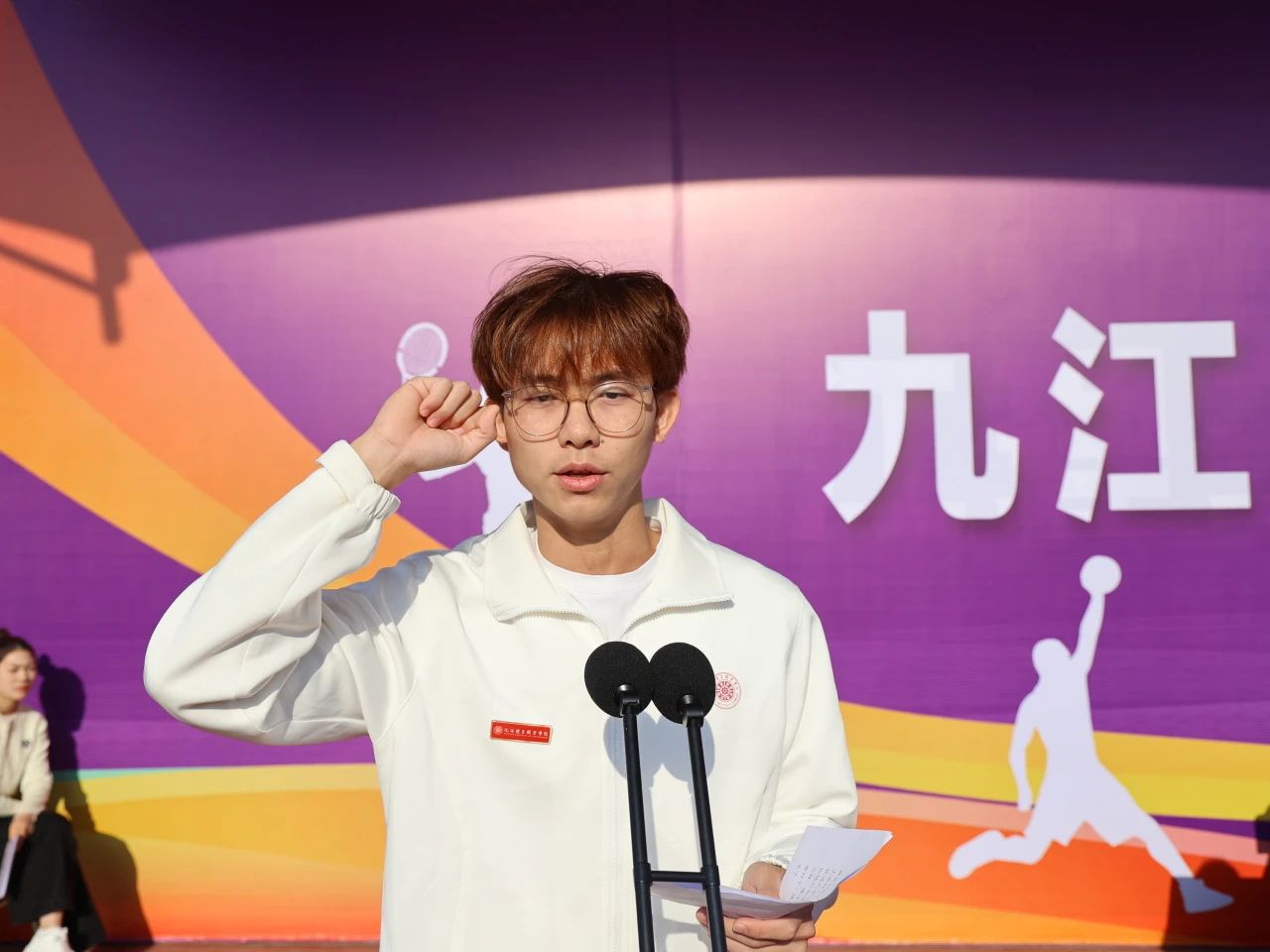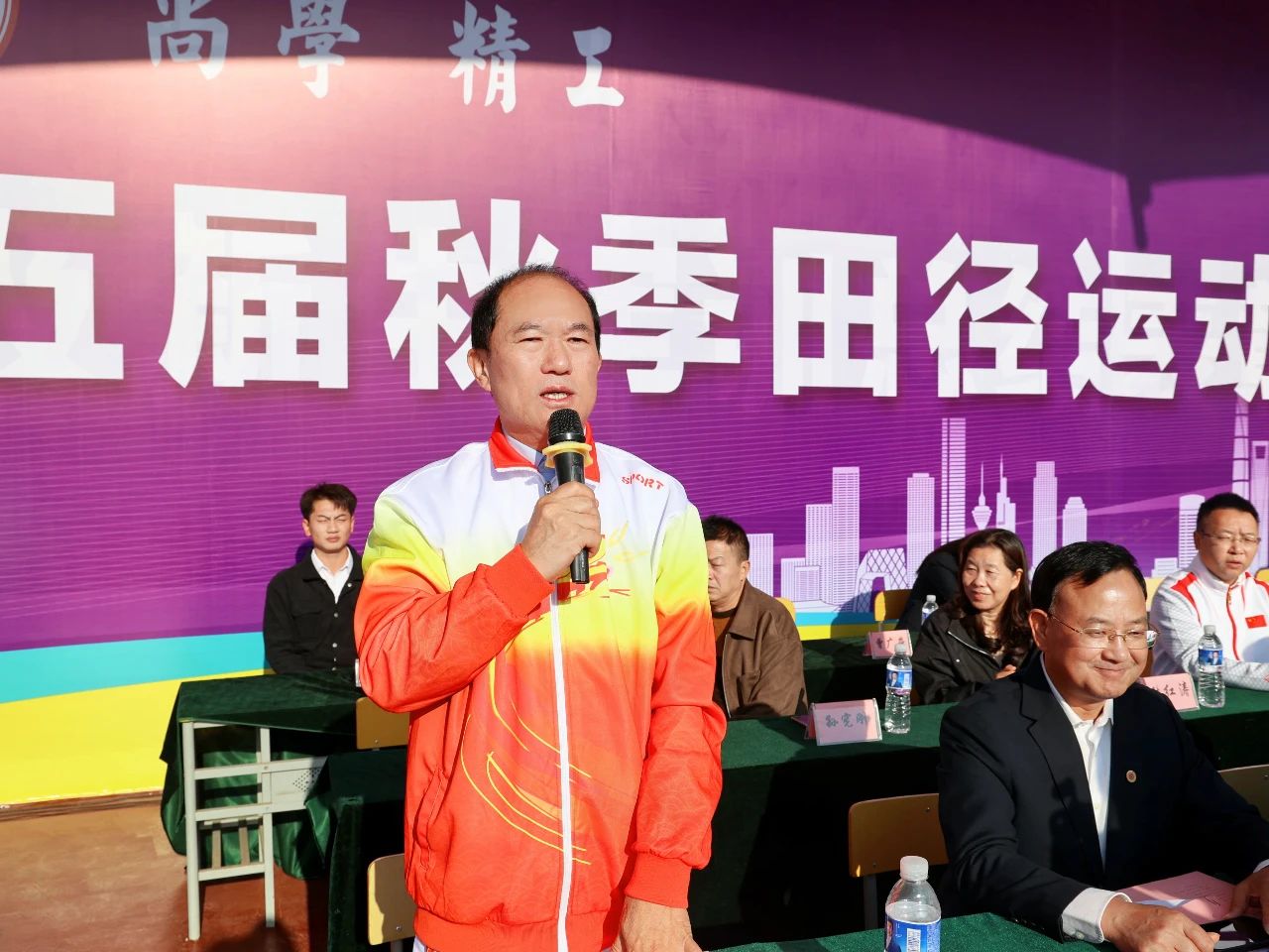 盧炳成宣布九江理工職業(yè)學(xué)院第五屆秋季田徑運(yùn)動(dòng)會(huì)正式開(kāi)幕。
