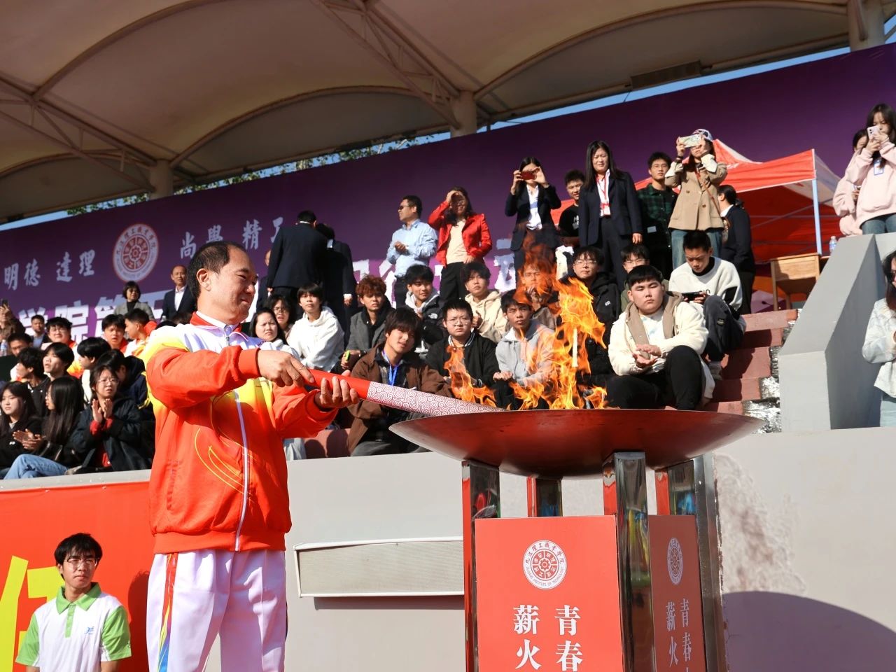 在開(kāi)幕式上,還舉行了火炬?zhèn)鬟f儀式,學(xué)校理事長(zhǎng)盧炳成、教師代表以及學(xué)生代表依次接力傳遞,火炬熊熊燃燒,象征著九江理工職業(yè)學(xué)院師生們團(tuán)結(jié)一心、奮勇向前的精神風(fēng)貌。