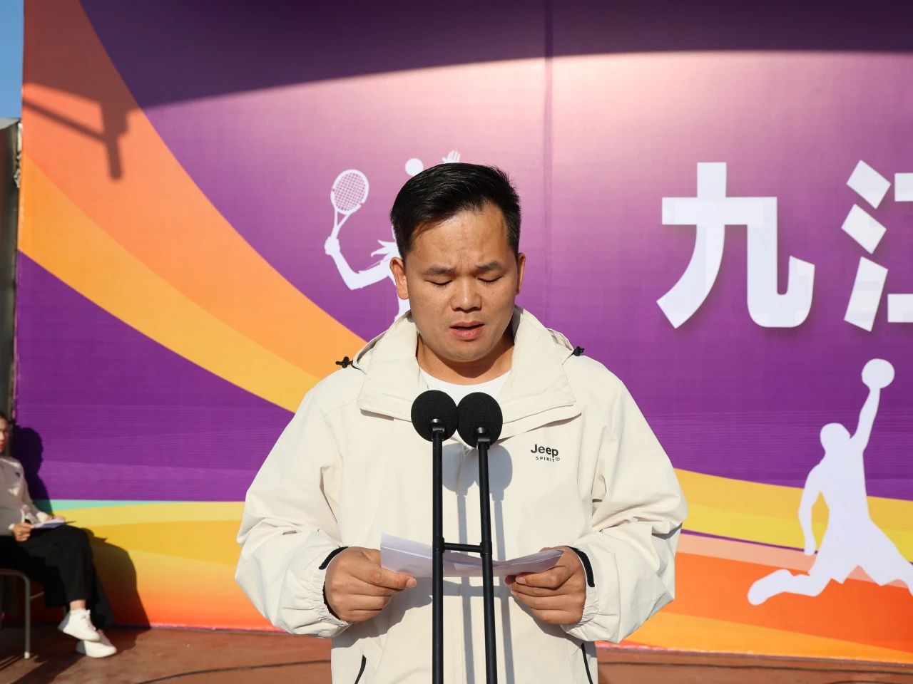 裁判長(zhǎng)徐鴻飛宣讀大會(huì)紀(jì)律。