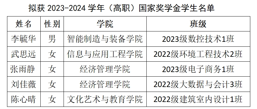 九江理工職業(yè)學(xué)院2023-2024學(xué)年國(guó)家獎(jiǎng)學(xué)金擬推薦名單公示